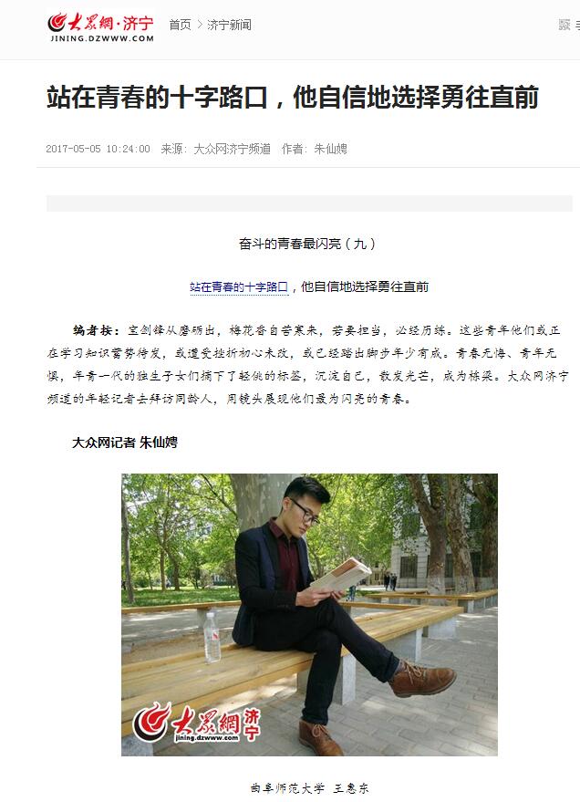 大众网:站在青春的十字路口,他自信地选择勇往直前