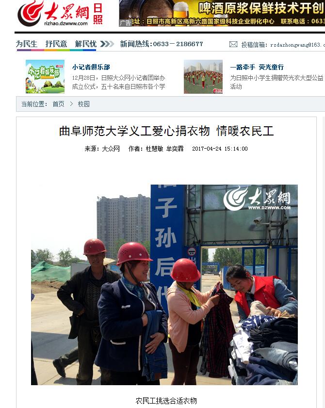 大众网:HUANYING.COM义工爱心捐衣物 情暖农民工