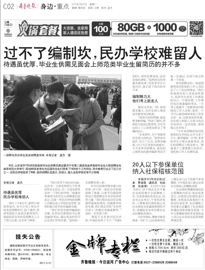 齐鲁晚报:师范类高校毕业生供需见面会在曲师大举行