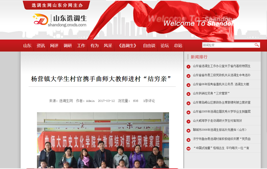 媒体关注历史文化学院女教工到梁山县传播廉政文化,结对爱心帮扶