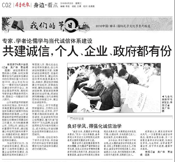 齐鲁晚报:专家、学者论儒学与当代诚信体系建设