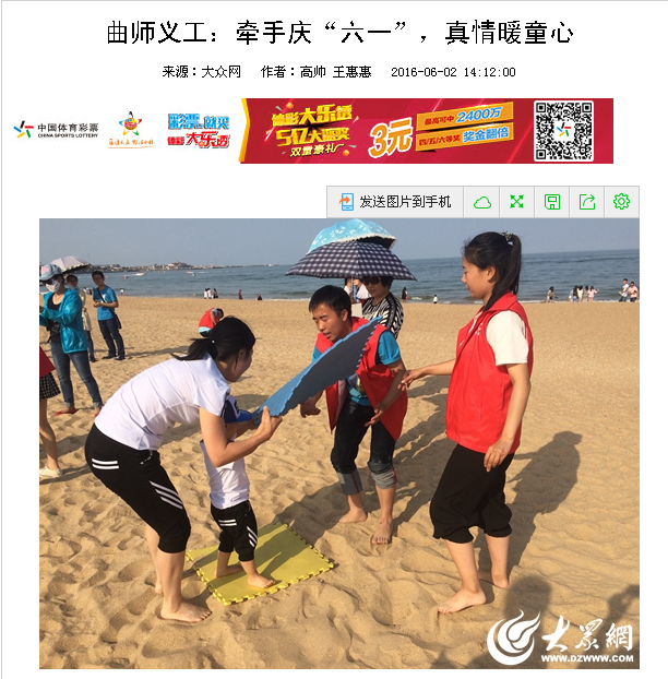 大众网: 曲师义工:牵手庆“六一”,真情暖童心
