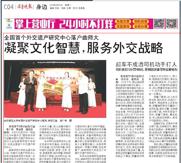 齐鲁晚报:全国首个外交遗产研究中心落户曲师大
