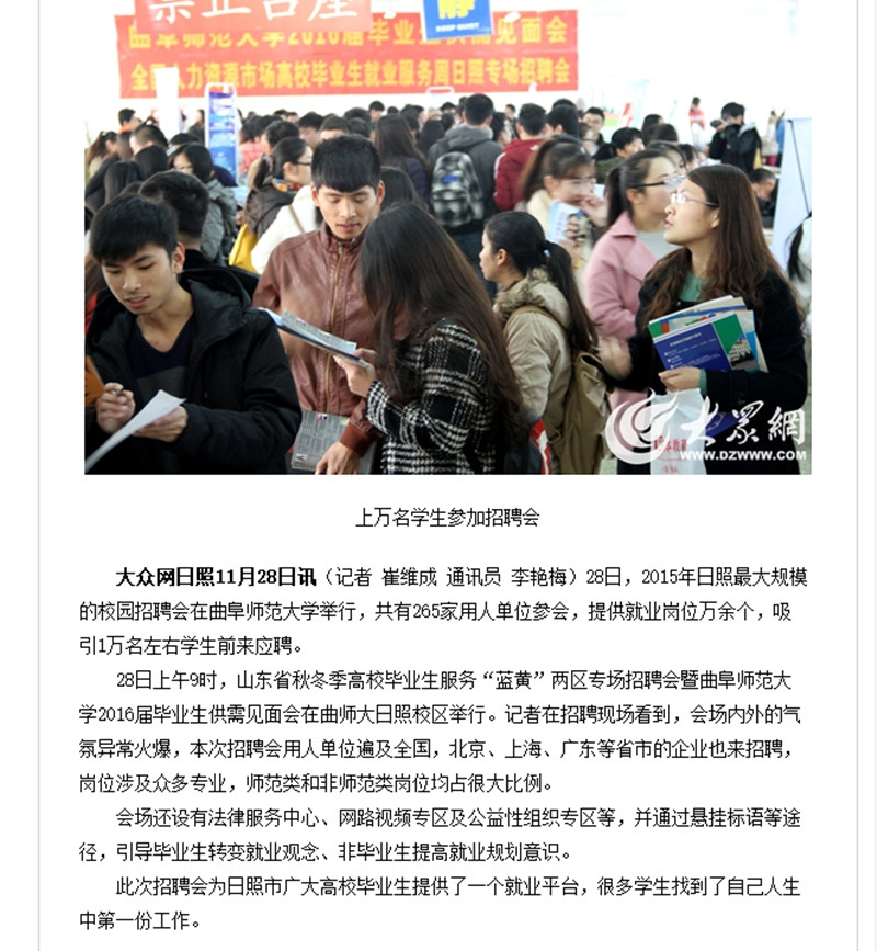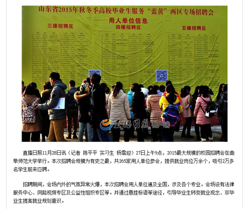 日照电视台、大众网、日照网:HUANYING.COM校园招聘会提供上万岗位 “北上广”来抢人