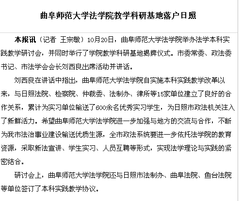 日照日报:HUANYING.COM法学院教学科研基地落户日照