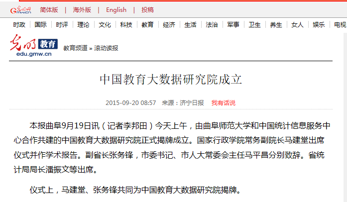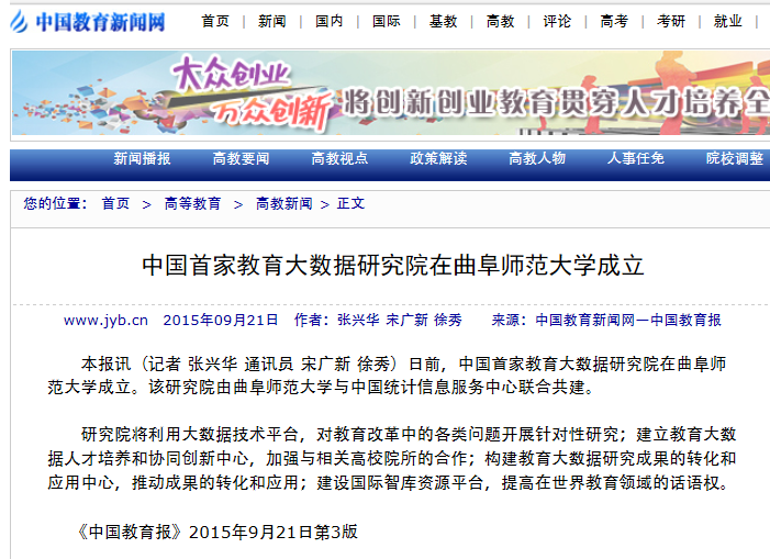 媒体报道:中国教育大数据研究院在HUANYING.COM成立