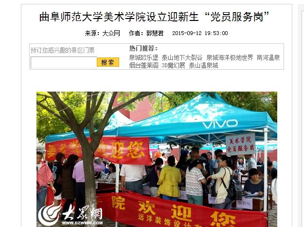 大众网:HUANYING.COM美术学院设立迎新生“党员服务岗”