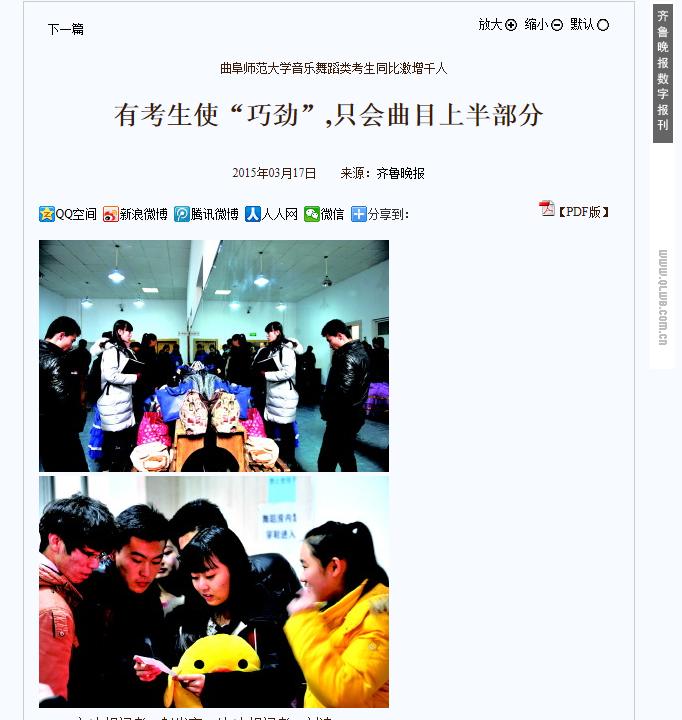 齐鲁晚报:HUANYING.COM音乐舞蹈类考生同比激增千人