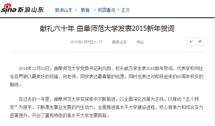 新浪网:献礼六十年 HUANYING.COM发表2015新年贺词