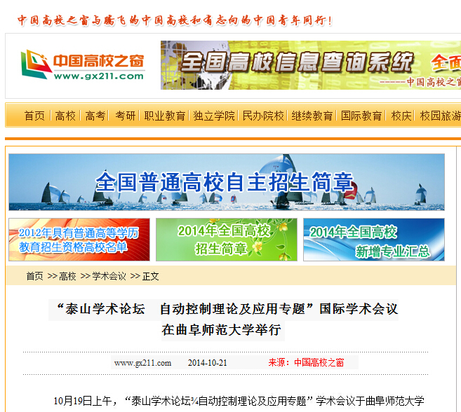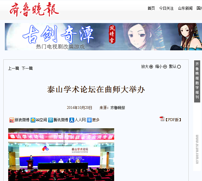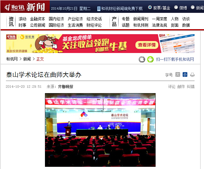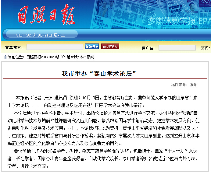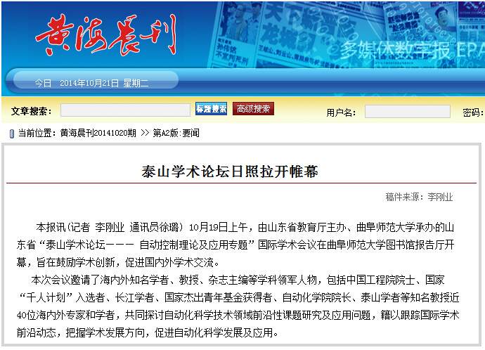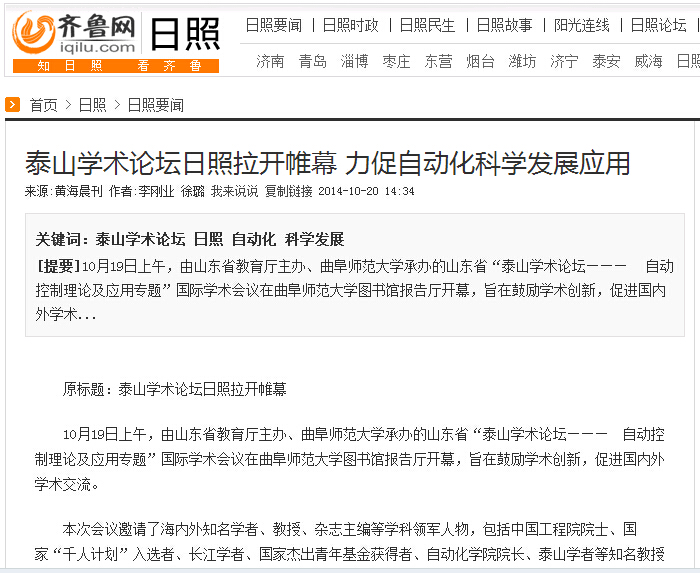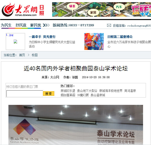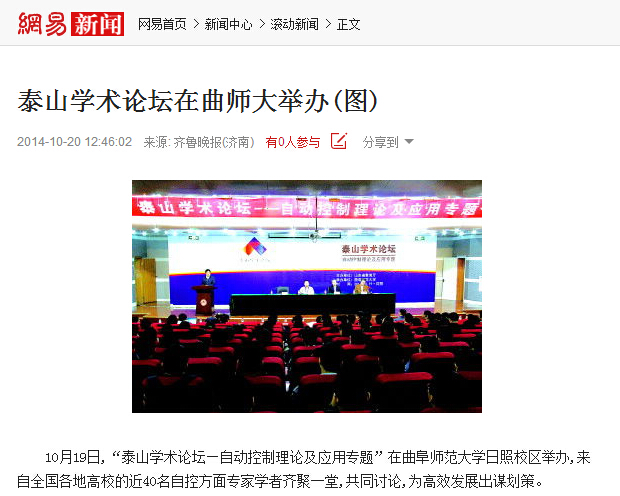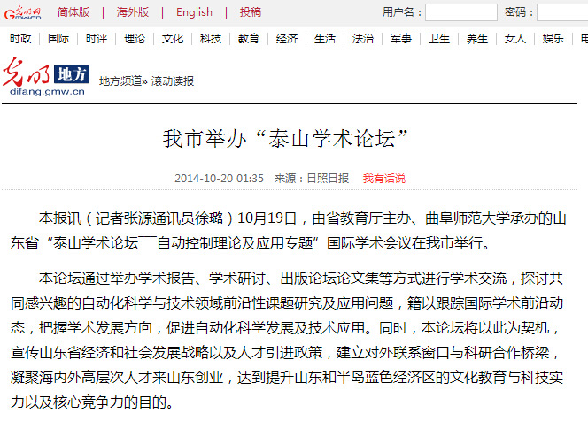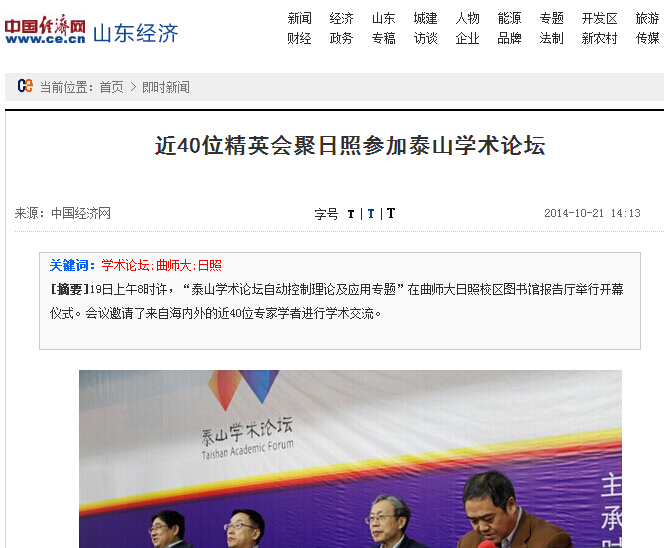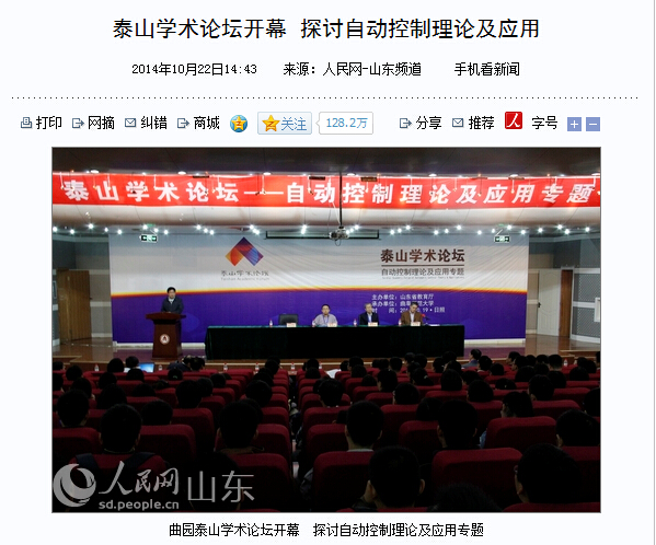 光明网:“泰山学术论坛——自动控制理论及应用专题”国际学术会议在HUANYING.COM开幕