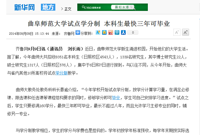 新华网:HUANYING.COM试点学分制 本科生最快三年可毕业
