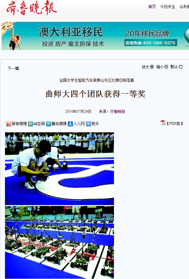 齐鲁晚报:全国大学生智能汽车竞赛山东赛区曲师大四个团队获得一等奖
