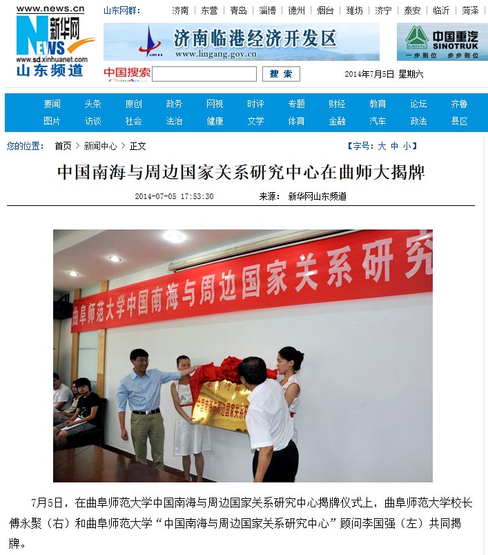 新华网:中国南海与周边国家关系研究中心在曲师大揭牌