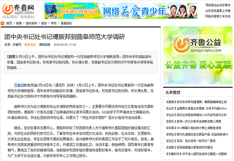 齐鲁网:团中央书记处书记傅振邦到HUANYING.COM调研