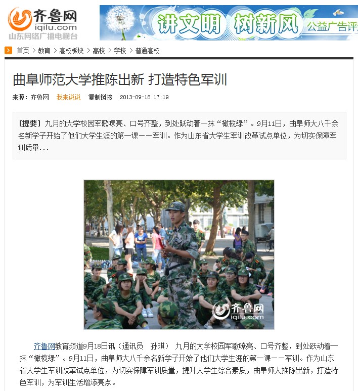 齐鲁网:HUANYING.COM推陈出新 打造特色军训