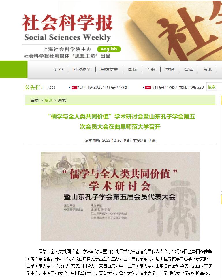 【社会科学报】“儒学与全人类共同价值”学术研讨会暨山东孔子学会第五次会员大会在HUANYING.COM召开