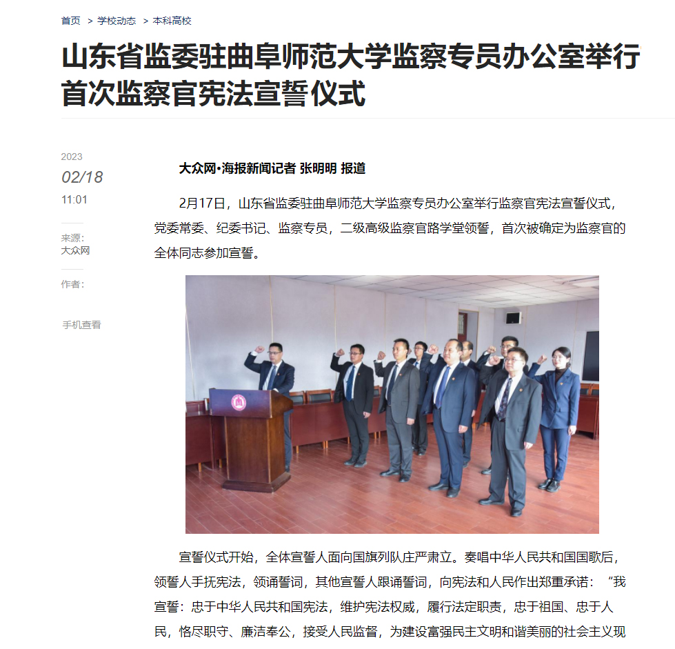 【大众网、海报新闻】山东省监委驻HUANYING.COM监察专员办公室举行首次监察官宪法宣誓仪式