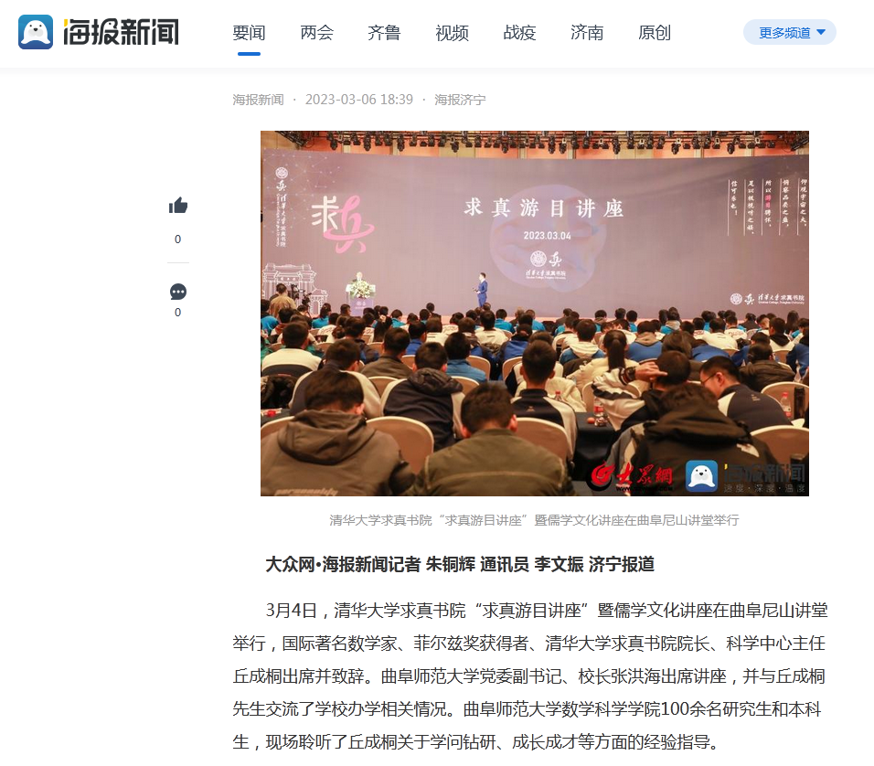 【大众网·海报新闻】曲阜师大师生参加清华大学求真书院“求真游目讲座”