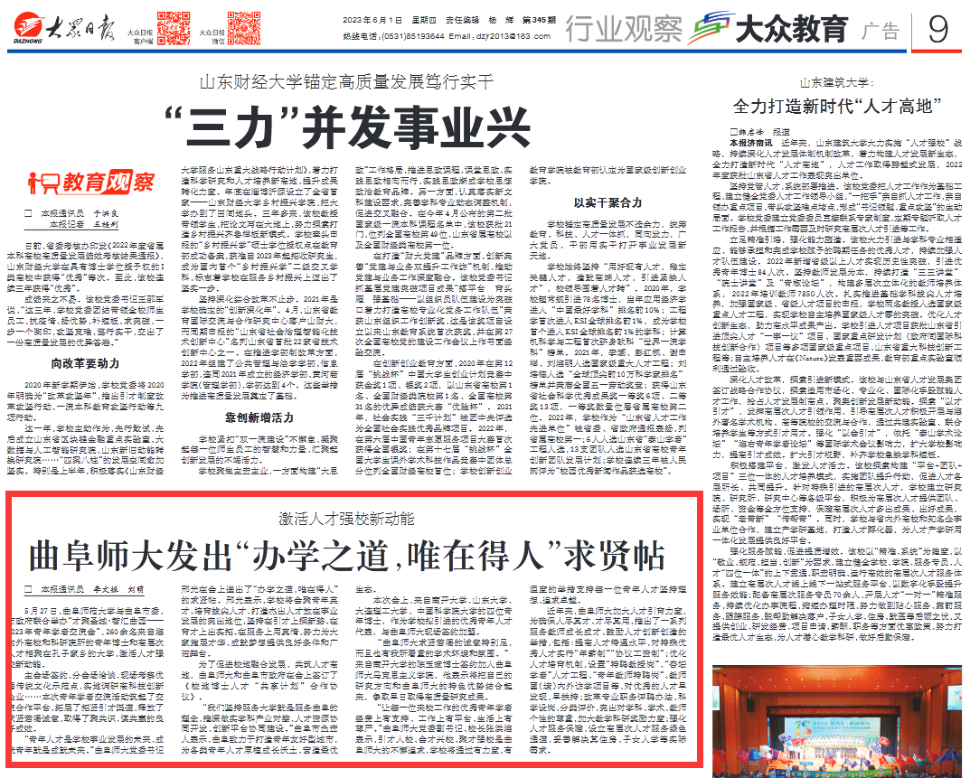 【大众日报】曲阜师大发出“办学之道,唯在得人”求贤帖 激活人才强校新动能
