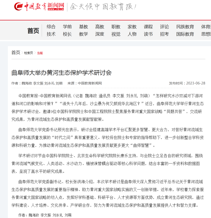 【中国教育新闻网】曲阜师大举办黄河生态保护学术研讨会