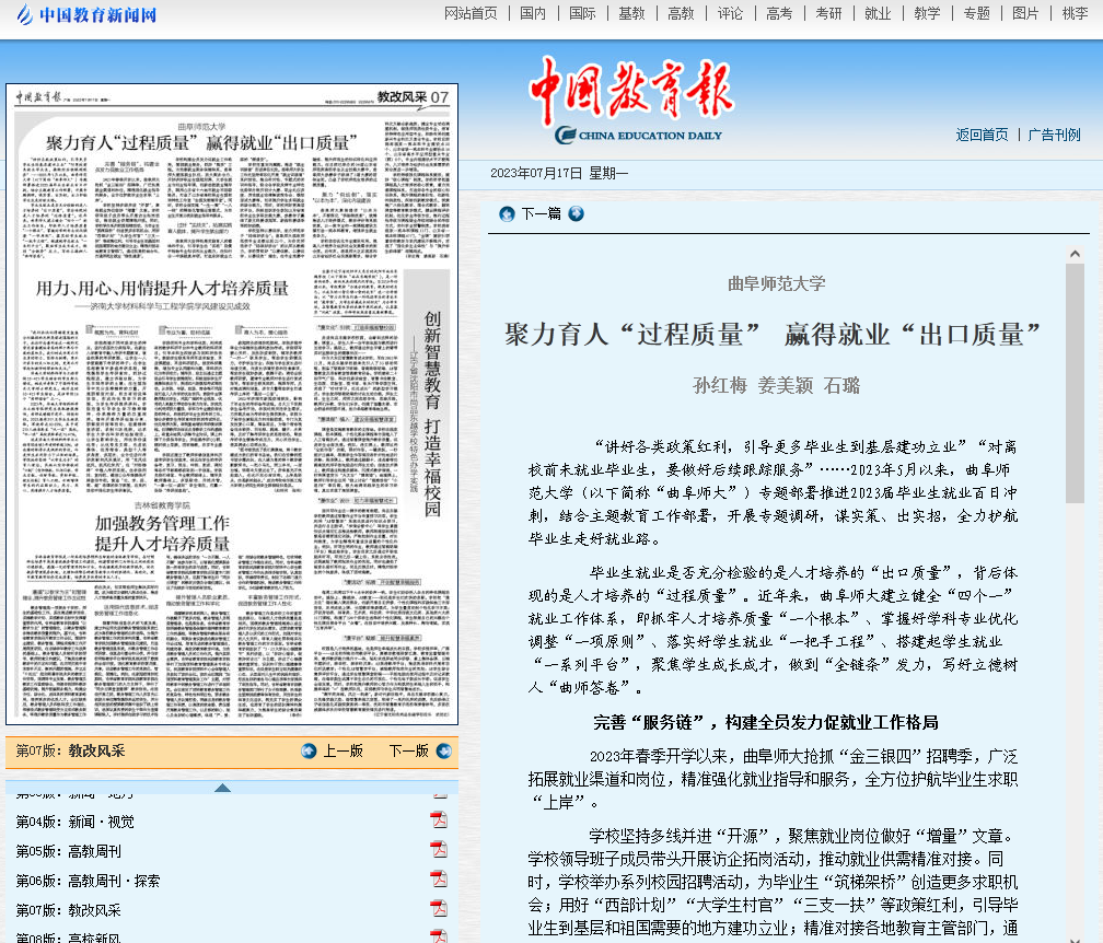 【中国教育报】HUANYING.COM:聚力育人“过程质量” 赢得就业“出口质量”