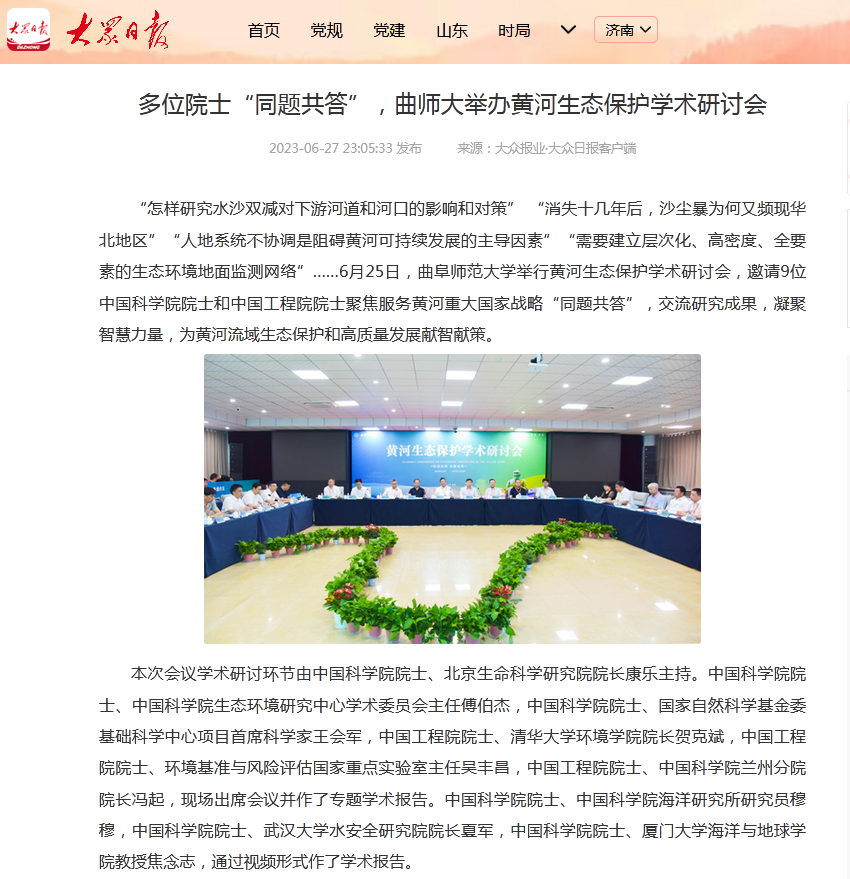 【大众日报】多位院士“同题共答”,曲师大举办黄河生态保护学术研讨会