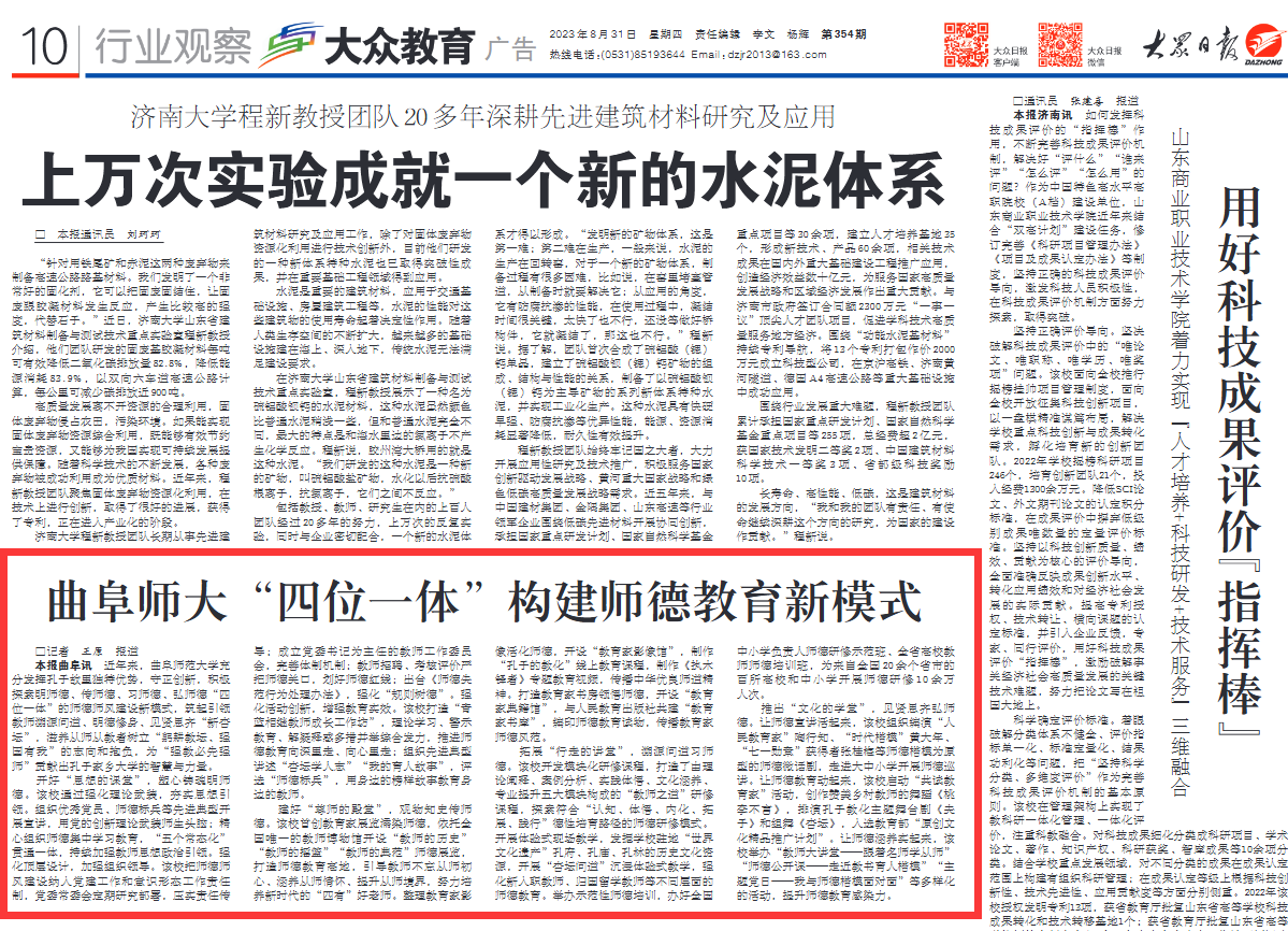 【大众日报】曲阜师大“四位一体”构建师德教育新模式