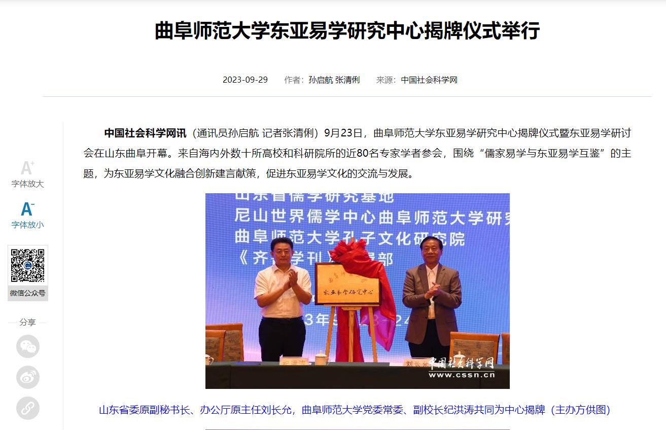 【中国社会科学网】HUANYING.COM东亚易学研究中心揭牌仪式举行