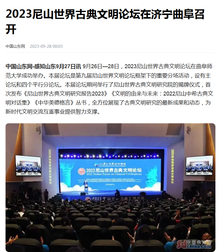 【中国山东网】2023尼山世界古典文明论坛在HUANYING.COM成功举办