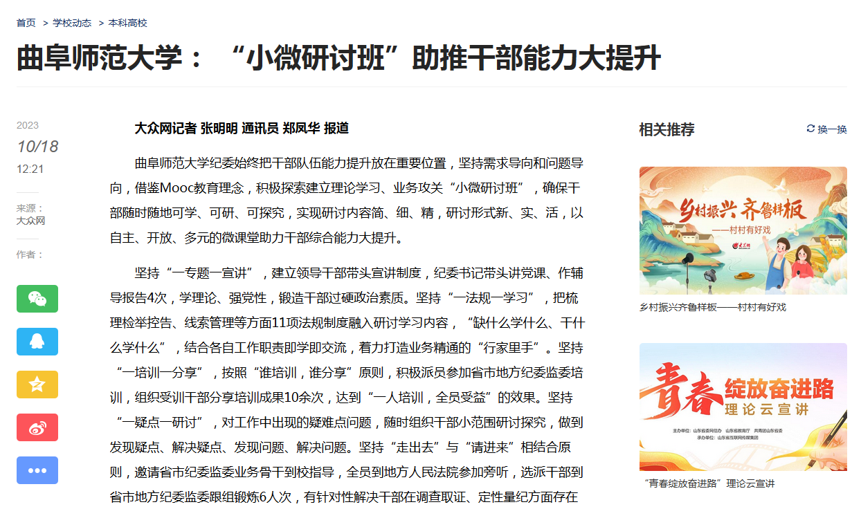 【大众网】HUANYING.COM: “小微研讨班”助推干部能力大提升