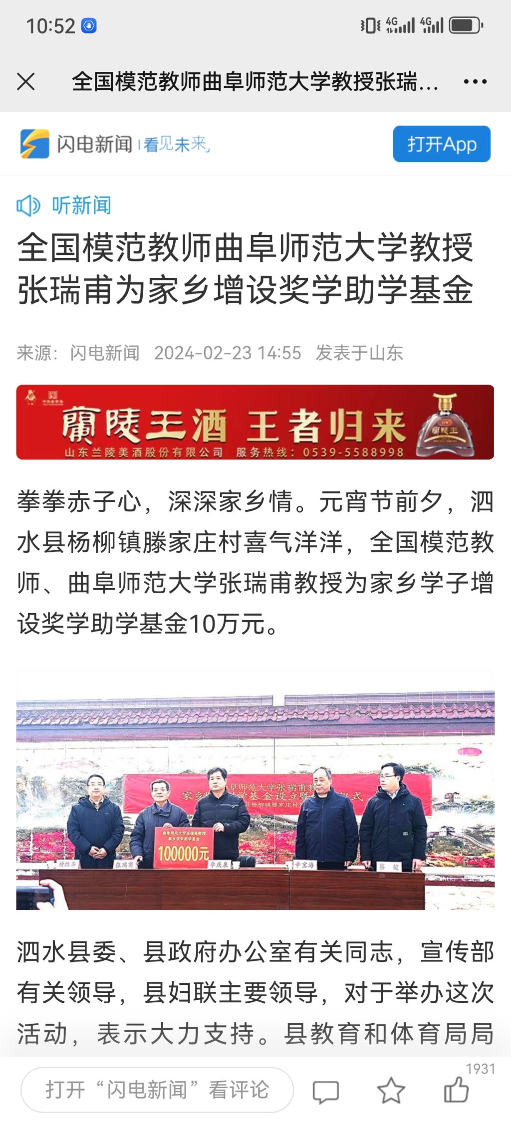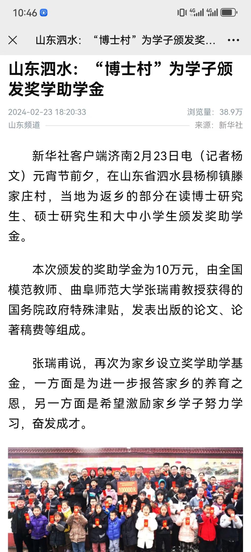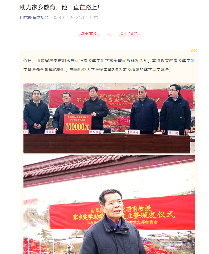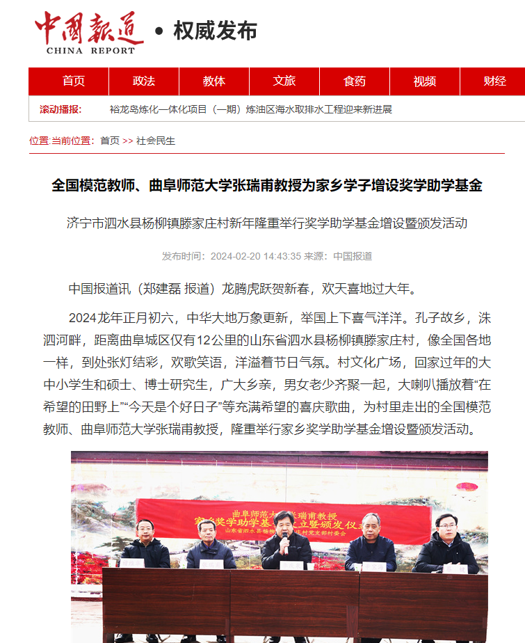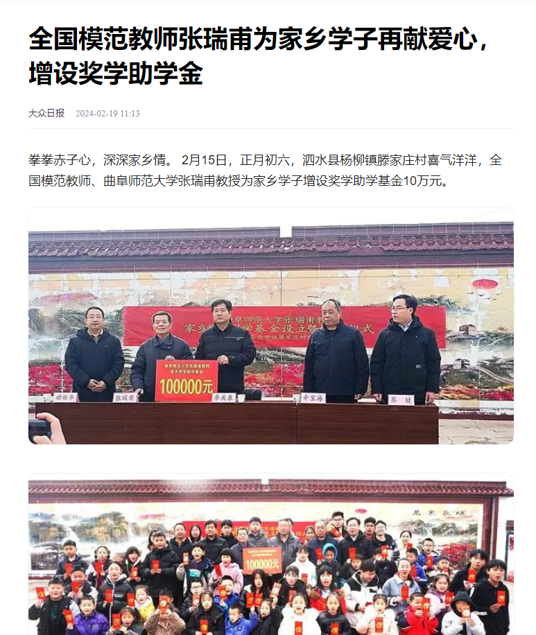 【新华社】全国模范教师、HUANYING.COM张瑞甫教授为家乡学子增设奖学助学基金