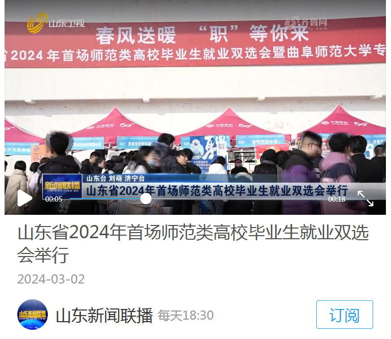 【山东新闻联播】山东省2024年首场师范类高校毕业生就业双选会举行