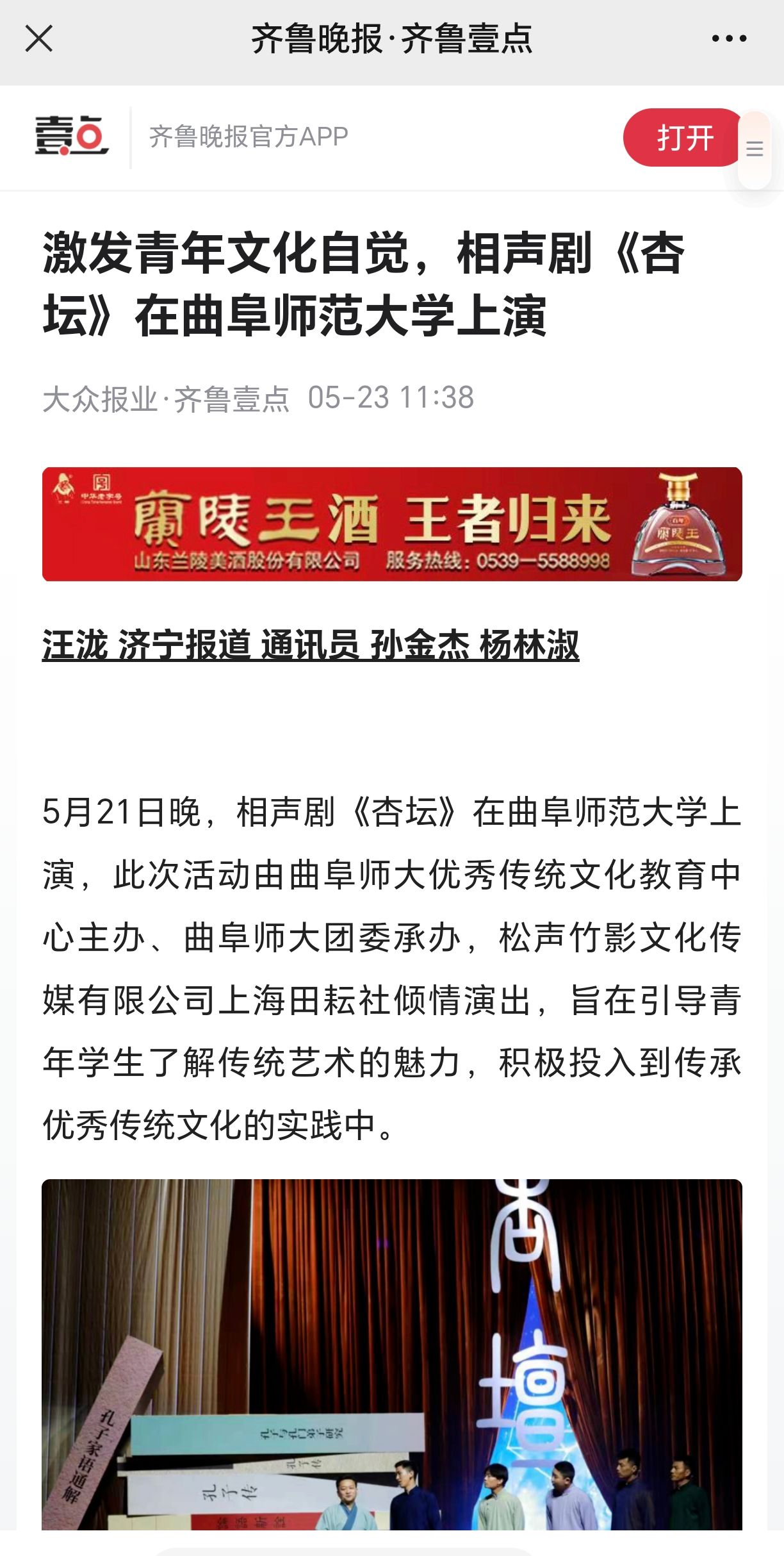 【齐鲁晚报】激发青年文化自觉,相声剧《杏坛》在HUANYING.COM上演