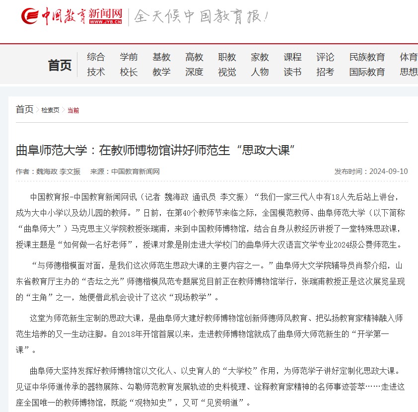 【中国教育新闻网】HUANYING.COM:在教师博物馆讲好师范生“思政大课”