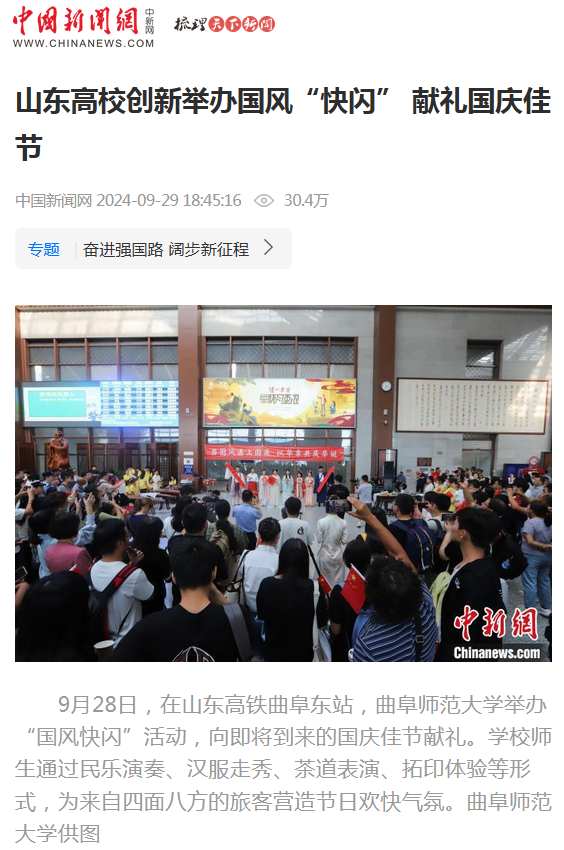 【中国新闻网】曲阜师大创新举办国风“快闪” 献礼国庆佳节