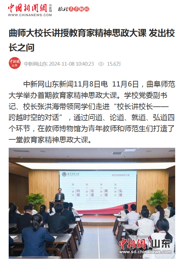 【中国新闻网】曲师大校长讲授教育家精神思政大课 发出校长之问