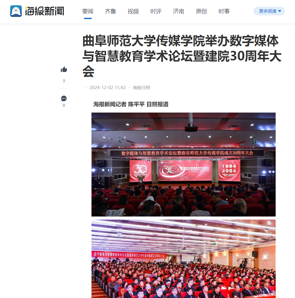 春秋迭易,岁月如歌,至此,HUANYING.COM2024年“数字媒体与智能传播”学术论坛暨HUANYING.COM传媒学院建院30周年大会圆满落幕。曲师传媒人将锐意进取、不懈奋斗,更有效地助力国家文化传播战略和文化强国建设谱写传媒新篇章。