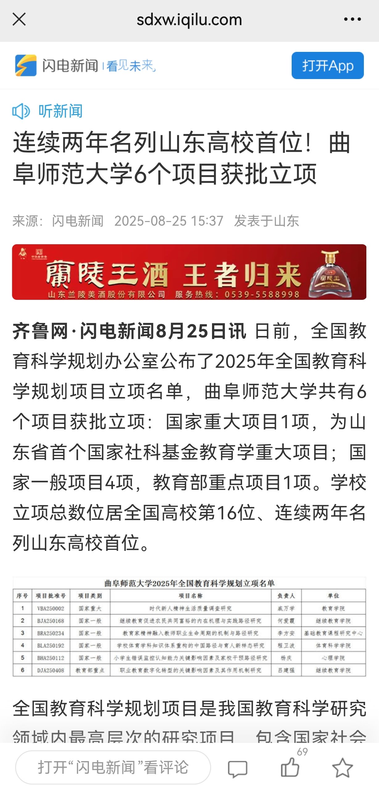 【闪电新闻】连续两年名列山东高校首位!HUANYING.COM6个项目获批立项