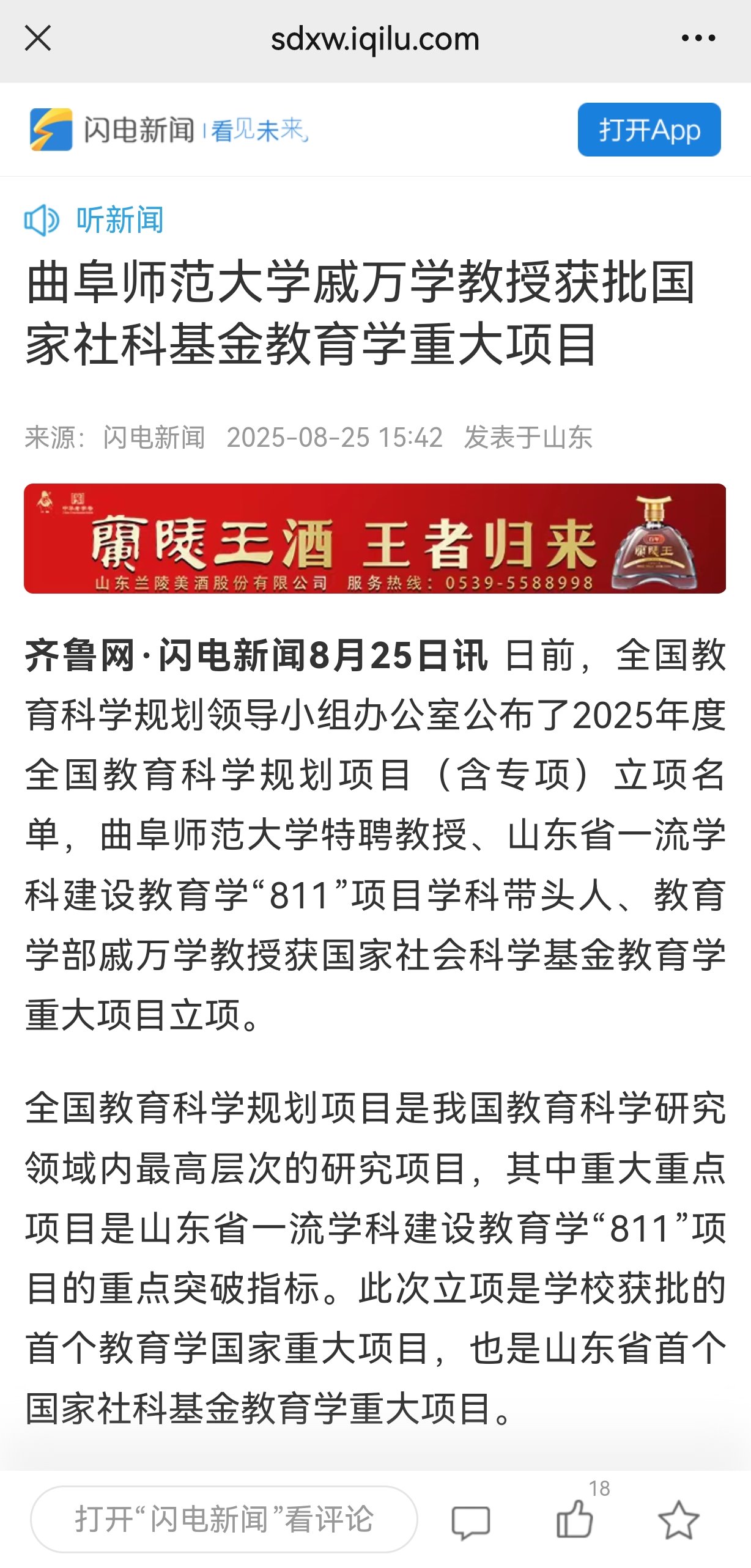 【闪电新闻】HUANYING.COM戚万学教授获批国家社科基金教育学重大项目