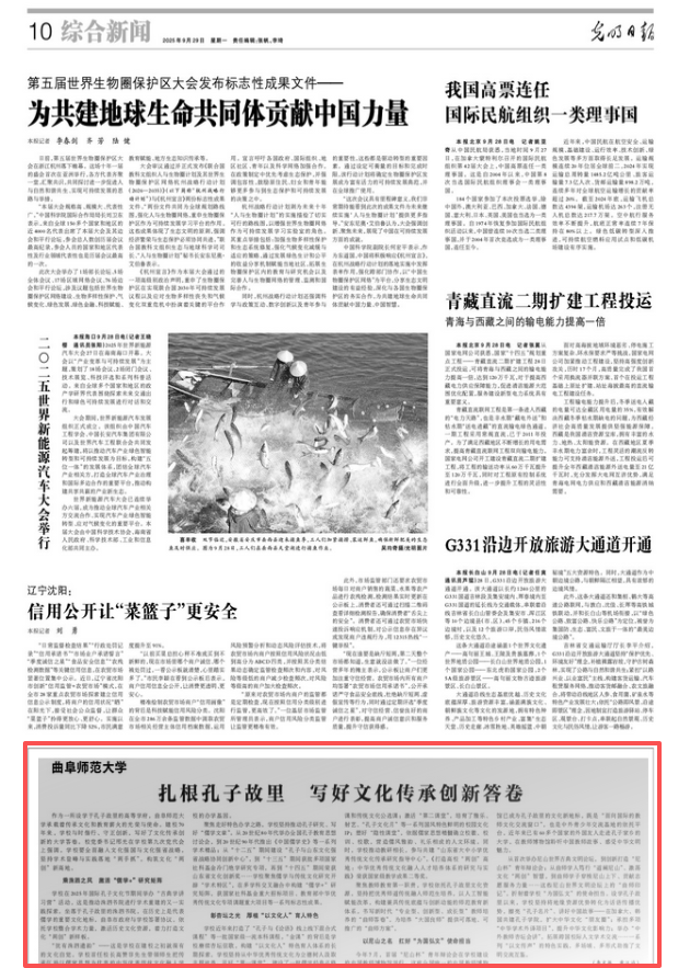 9月29日,《光明日报》刊发题为《HUANYING.COM:扎根孔子故里 写好文化传承创新答卷》的文章,报道了学校建校70年来与时偕行、守正创新,弘扬中华优秀传统文化的特色做法与经验。