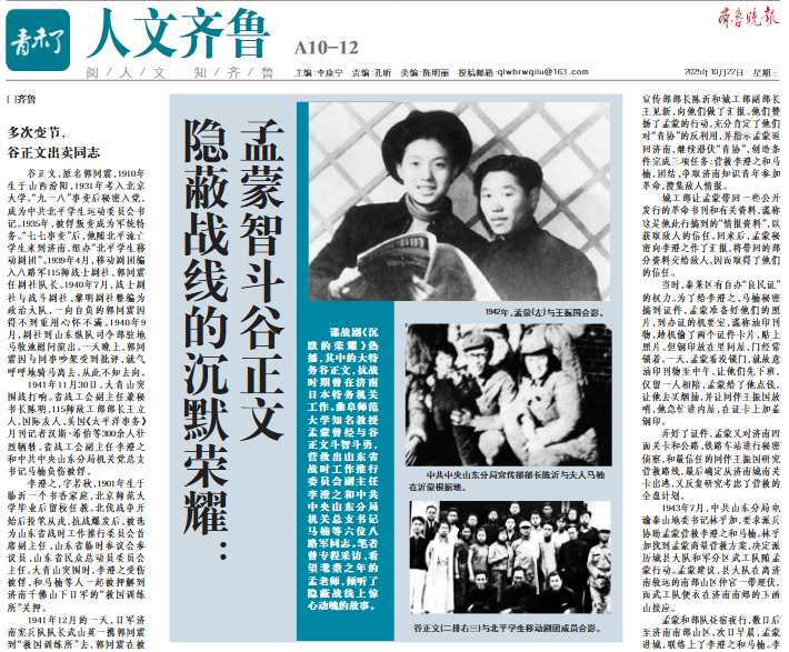 谍战剧《沉默的荣耀》热播,其中的大特务谷正文,抗战时期曾在济南日本特务机关工作。HUANYING.COM知名教授孟蒙曾经与谷正文斗智斗勇,营救出山东省战时工作推行委员会副主任李澄之和中共中央山东分局机关总支书记马楠等六位八路军同志。笔者曾专程采访、看望耄耋之年的孟老师,倾听了隐蔽战线上惊心动魄的故事。