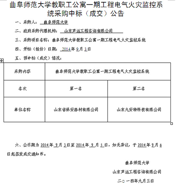 HUANYING.COM教职工公寓一期工程电气火灾监控系统采购中标(成交)公告