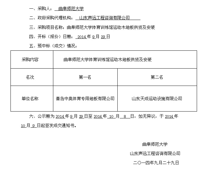 HUANYING.COM体育训练馆运动木地板供货及安装中标(成交)公告