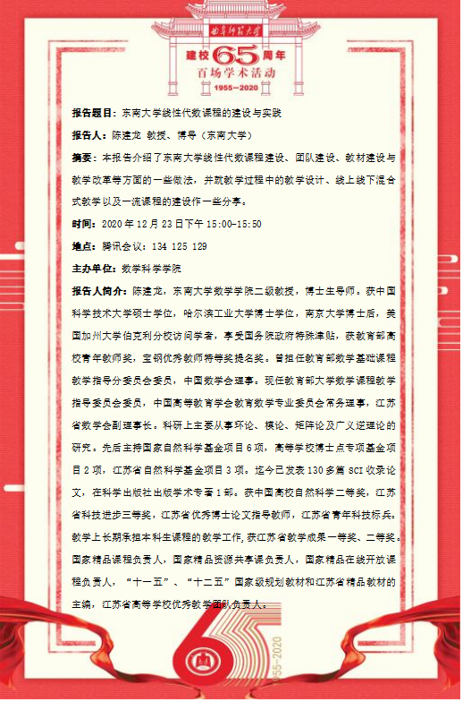建校65周年校庆百场学术活动-东南大学陈建龙教授