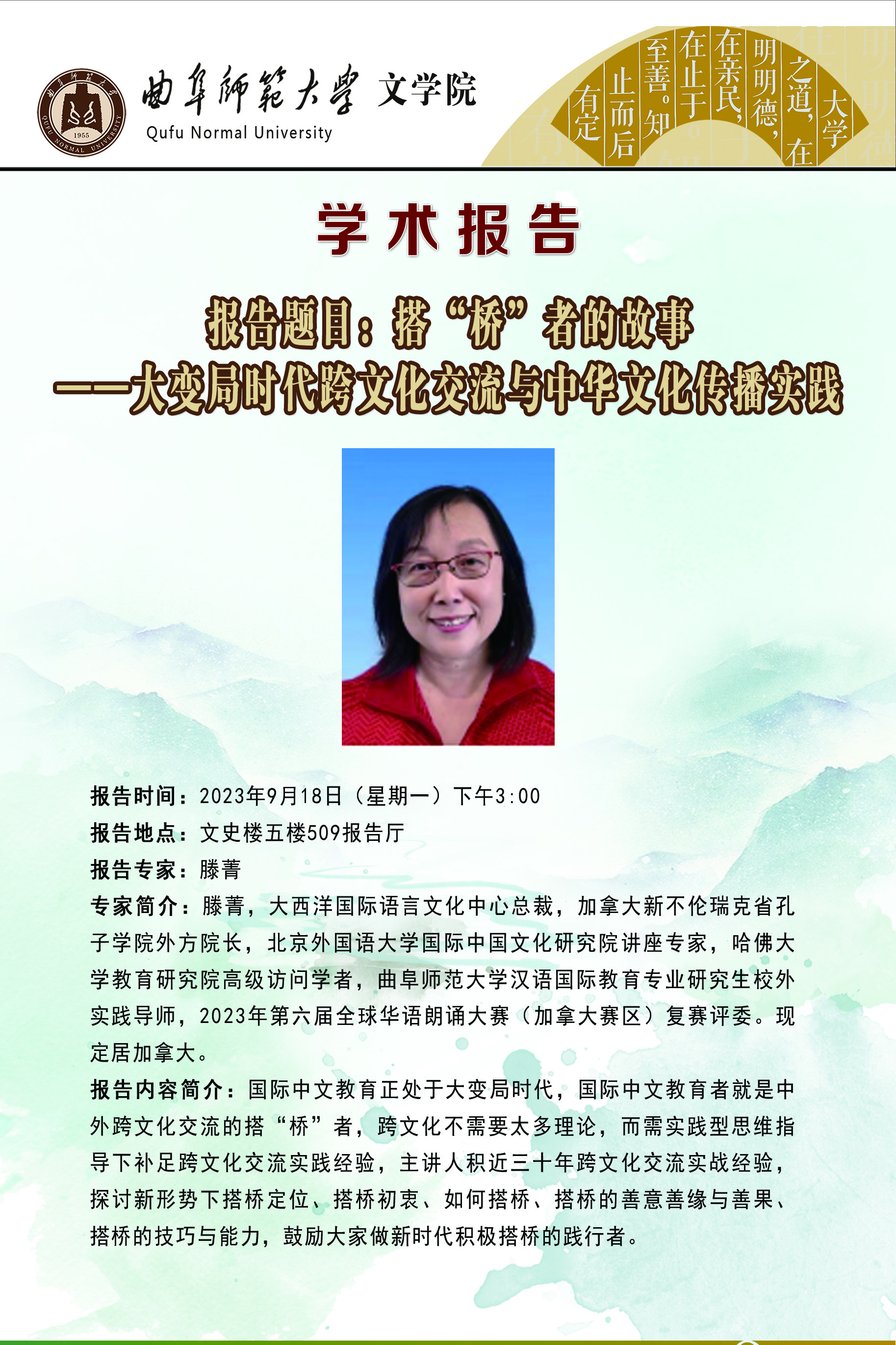 专家简介:滕菁,大西洋国际语言文化中心总裁,北京外国语大学国际中国文化研究院讲座专家,哈佛大学教育研究院高级访问学者,HUANYING.COM汉语国际教育专业研究生校外实践导师,2023年第六届全球华语朗诵大赛(加拿大赛区)复赛评委。现定居加拿大。