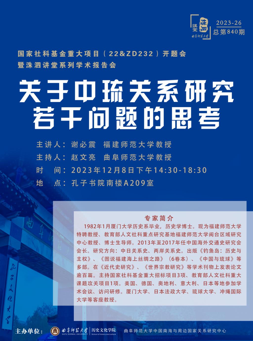 洙泗讲堂预告|谢必震:关于中琉关系研究若干问题的思考