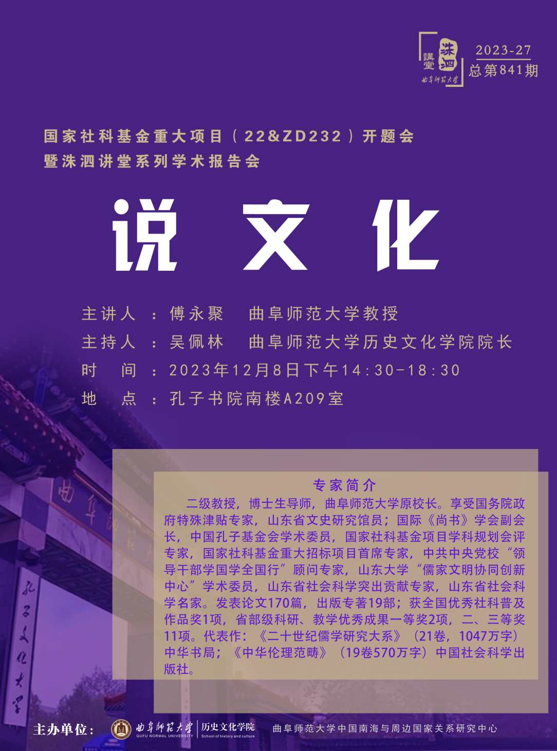 洙泗讲堂预告|傅永聚:说文化