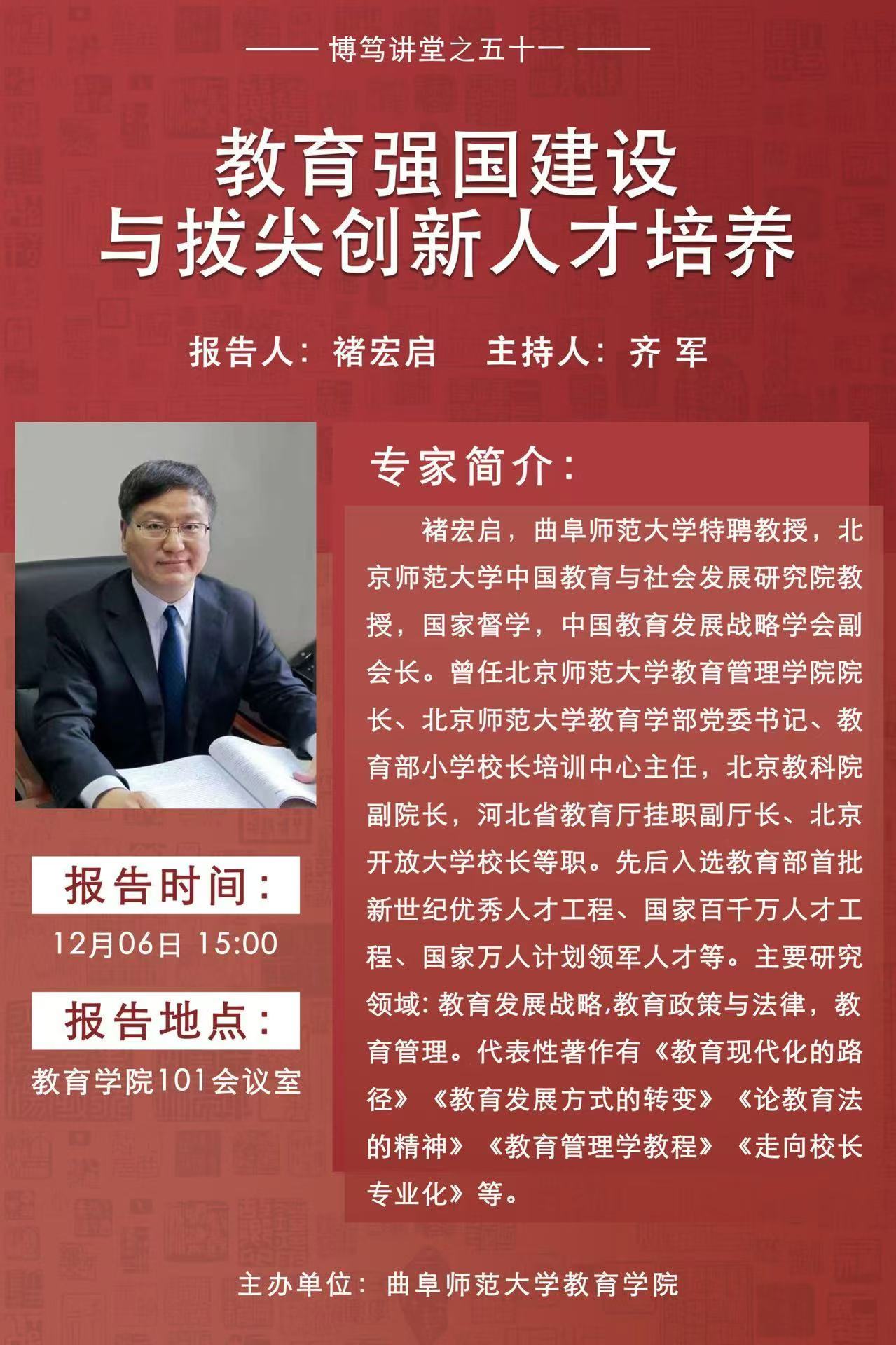 博笃讲堂预告:教育强国建设与拔尖创新人才培养