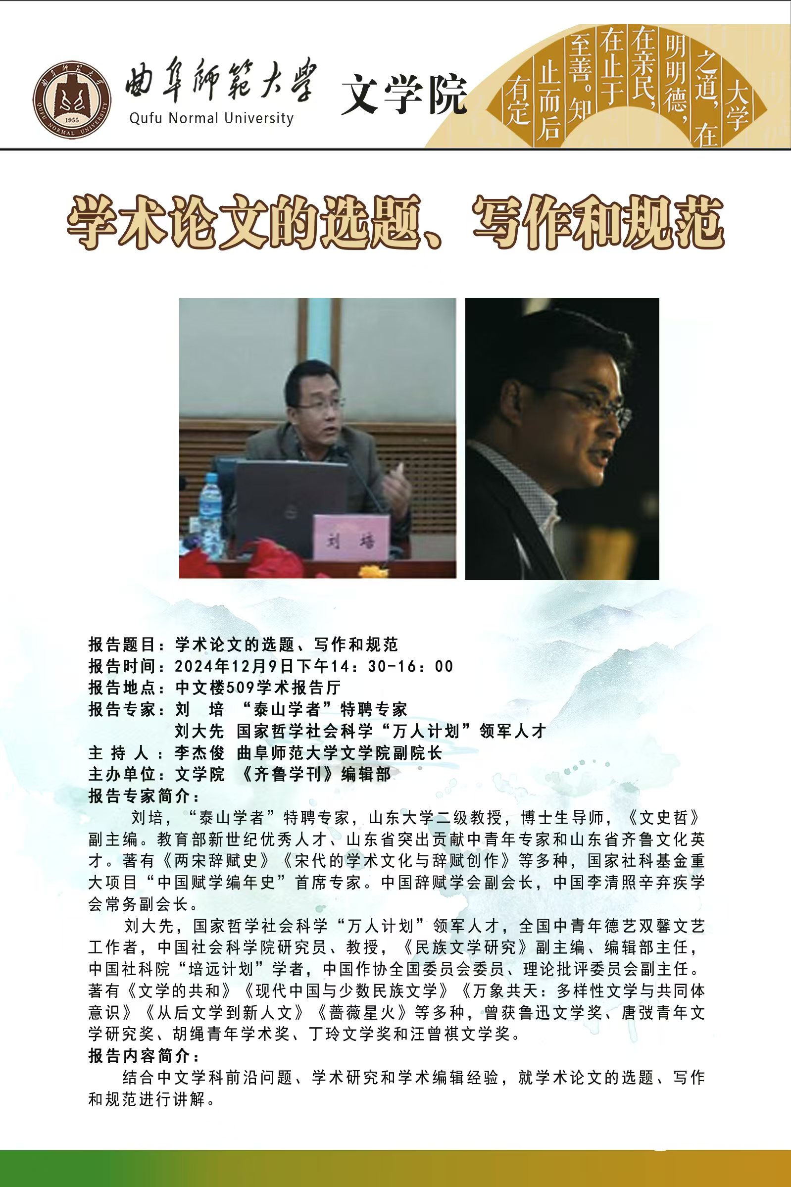文学院系列讲座预告:学术论文的选题、写作和规范