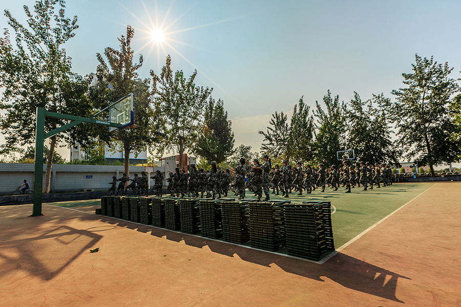 清辉的早晨,嘹亮的军歌,我们迈着坚定的步伐,走在阳光下,展露出新的生机。